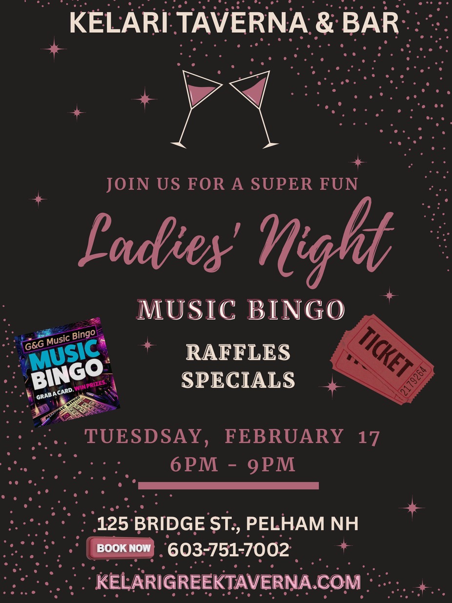 Ditch the stress!! Invite your girls to an unforgettable night of laughs, fun cocktails, great food and connection! Another Ladies' Night at Kelari with Music Bingo and Prizes! Make your reservation to secure your spot!
